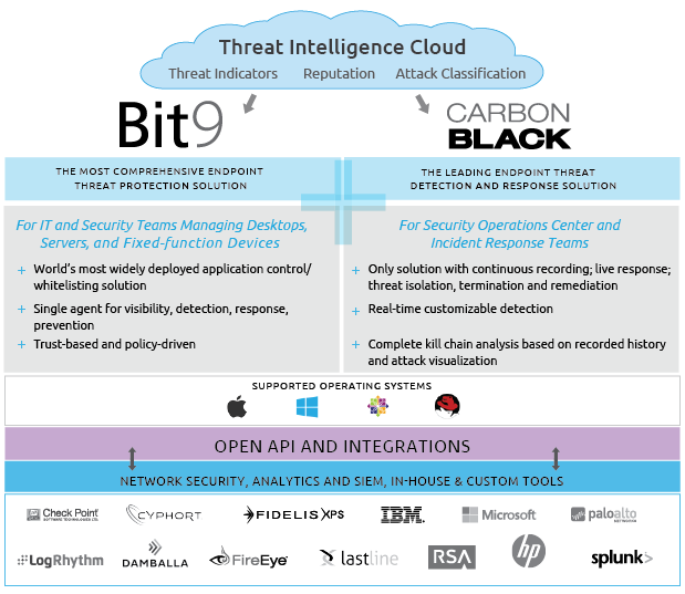 The Bit9 Security Platform enables utilities to unify cyber security around a single platform, which improves overall security posture via system-wide visibility and next-generation best practices, including advanced detection and prevention. In addition, the Bit9 Security Platform provides defense in depth by interfacing to and integrating with other technologies, such as network security devices, security information and event management systems (SIEMs), and data analytics tools.